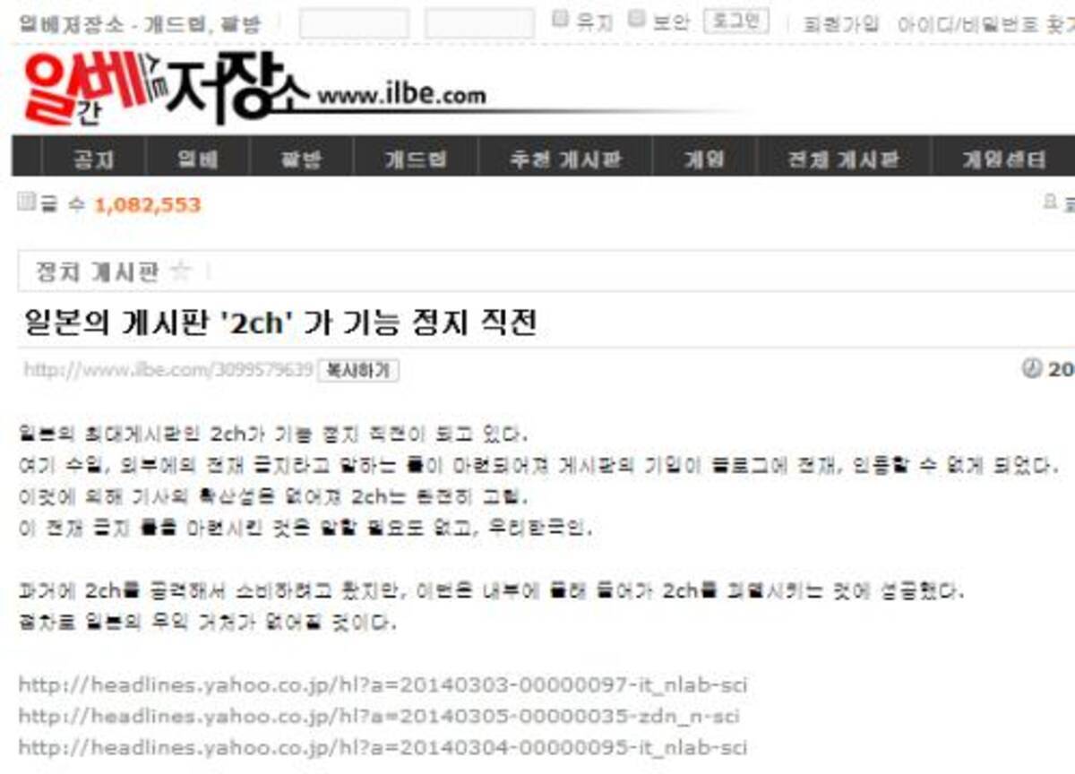 2ちゃんねる の書き込みを転載禁止させ内部分裂 右翼の居場所を失う と韓国の掲示板に書き込み 14年3月6日 エキサイトニュース
